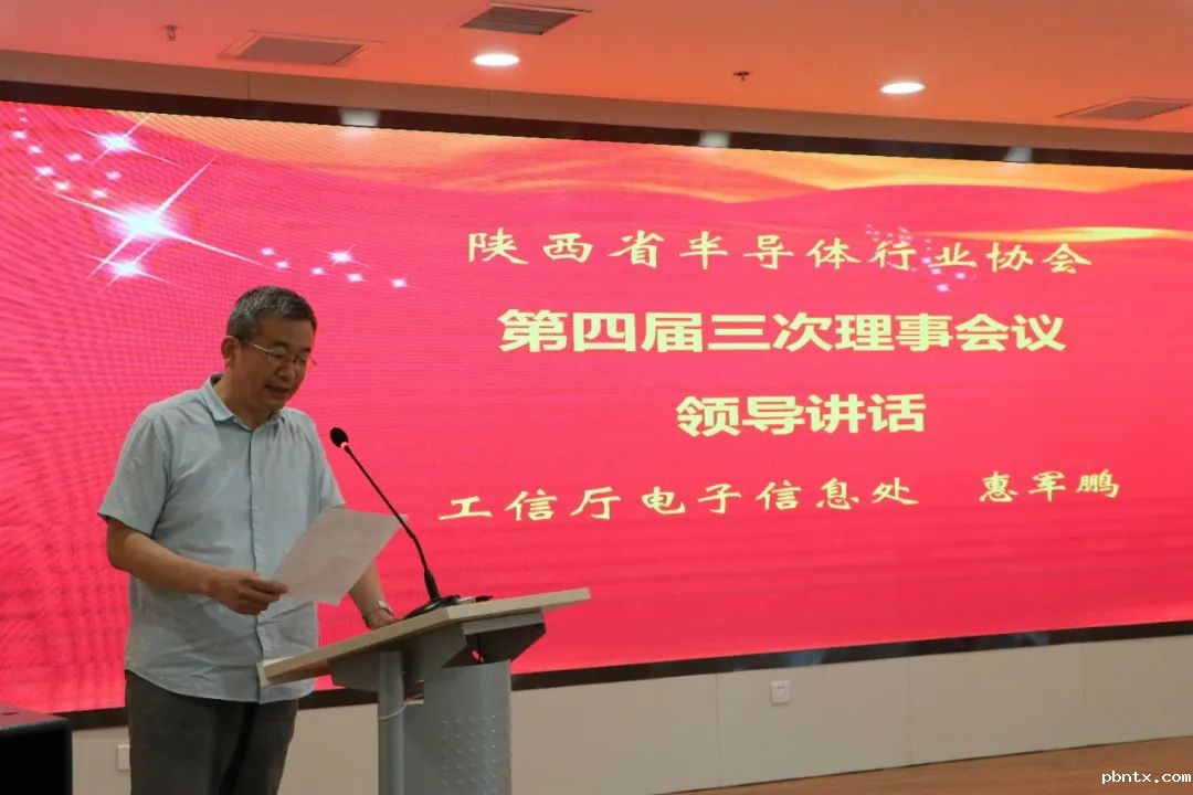 工信厅领导电子信息处副处长惠军鹏做了重要讲话。惠处长对协会多年来为促进陕西省半导体产业的发展所做的贡献表示了充分的肯定,对协会与半导体企业取得的成绩表示赞赏。惠处长指出,此次疫情显示出我省以半导体为首的电子信息产业的支撑作用和突出地位,工信厅等政府部门长期支持我省半导体产业的发展,协会专业的服务能力有目共睹;希望陕西省半导体行业协会继续以发挥桥梁纽带作用为主线,以企业需求和市场导向为指引,把协会办成充满生机、影响广泛、专业能力突出,在国内具有一定影响力的行业服务机构,促进我省半导体产业在全国地位稳步提升。